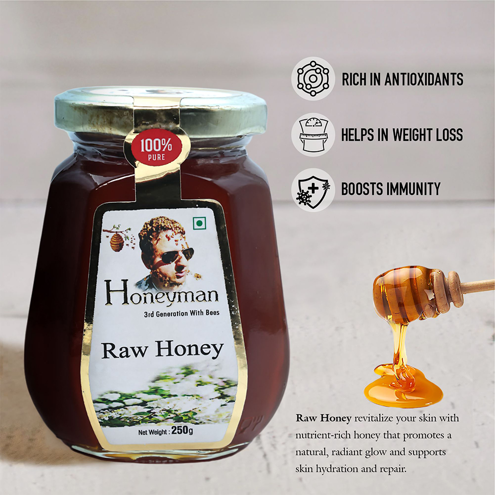 Unprocessed, unfiltered, and straight from the hive – Honeyman’s Raw Honey is honey in its most natural form. Unlike regular honey, it is not pasteurized or heavily filtered, preserving its natural pollen, enzymes, and nutrients. This makes it one of the most wholesome and health-rich honeys available.